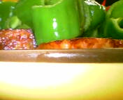 ハムとまんがんじ唐辛子焼きです