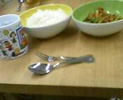 ばんごはんはトマトとなすとアスパラのカレーでーす。