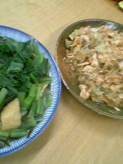 晩御飯は鮭ポテト焼と、小松菜と油揚げにびたしです。